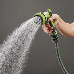 Pistola doccia multifunzione Verdemax in alluminio, con 7 getti regolabili per un'irrigazione precisa e senza sprechi. Robusta, ergonomica e compatibile con tutti i sistemi standard.